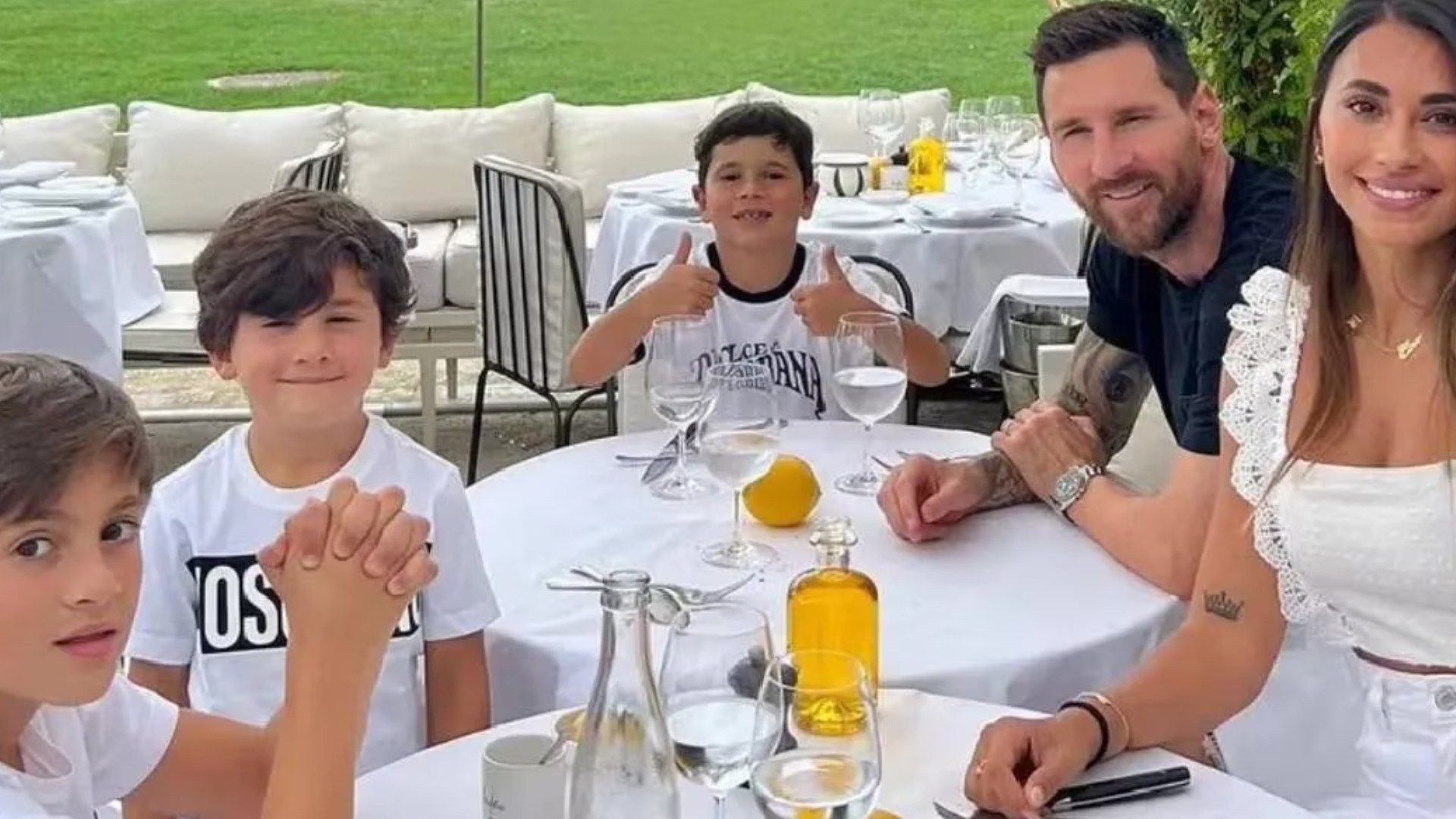 Messi a tavola con la moglie e i figli