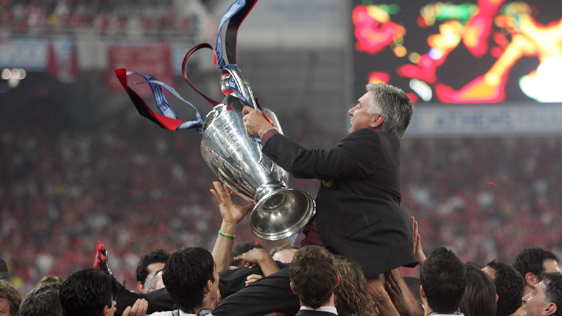 Se l’era Berlusconiana è cominciata con Arrigo Sacchi, si può dire che – in un certo senso – si è conclusa con Carlo Ancelotti. Ovvio, dopo di lui ci sono stati altri allenatori. Ma – forse tranne solo in piccola parte Allegri – nessuno è più riuscito a dare quella sensazione di Milan dominante come accaduto con Sacchi, Capello e, appunto, Ancelotti. Re Carlo sbarca in rossonero nel 2001 dopo un’avventura non particolarmente esaltante alla Juventus. A Milano vive 8 stagioni ricche di trionfi e di qualsiasi trofeo: uno scudetto, una Coppa Italia, una Supercoppa Italiana, un Mondiale per club, 2 Supercoppe Uefa e 2 Champions League. Un palmares molto simile a quello delle tre leggende di cui abbiamo parlato qui sopra. E non è certo un caso. Già, perché Ancelotti si inserisce in questa élite di maghi del calcio per vittorie e capacità di dominare, in Italia e nel mondo. I suoi successi, come d’altronde quelli dei predecessori, sono eccezionali. Ma forse, per via degli avversari affrontati, un po’ più speciali. Il Milan di Re Carlo ha saputo vincere una Champions battendo in semifinale i cugini dell’Inter e in finale i rivali della Juventus: un doppio scalpo che probabilmente rimarrà per sempre irripetibile. Ed è vero che dopo ha dovuto affrontare una delle delusioni più cocenti di tutta la storia rossonera – rimonta da 3-0 a 3-3 e Champions sfumata in finale con il Liverpool – ma poi, passati due anni, è arrivato il momento della “vendetta” e della seconda coppa dalle grandi orecchie.