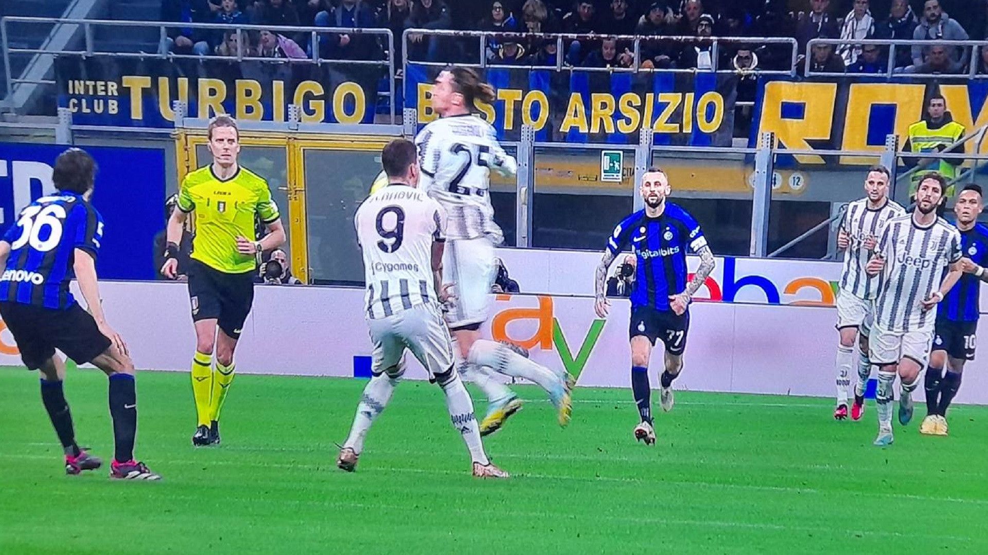 A centrocampo il francese Rabiot stoppa un pallone allargando visibilmente il braccio. La palla rimbalza quasi all’altezza della spalla. Il pallone poi viene passato a Vlahovic che allarga per Kostic. Il serbo fa partire un diagonale rasoterra dalla precisione millimetrica e porta in vantaggio la Juventus per 0-1.