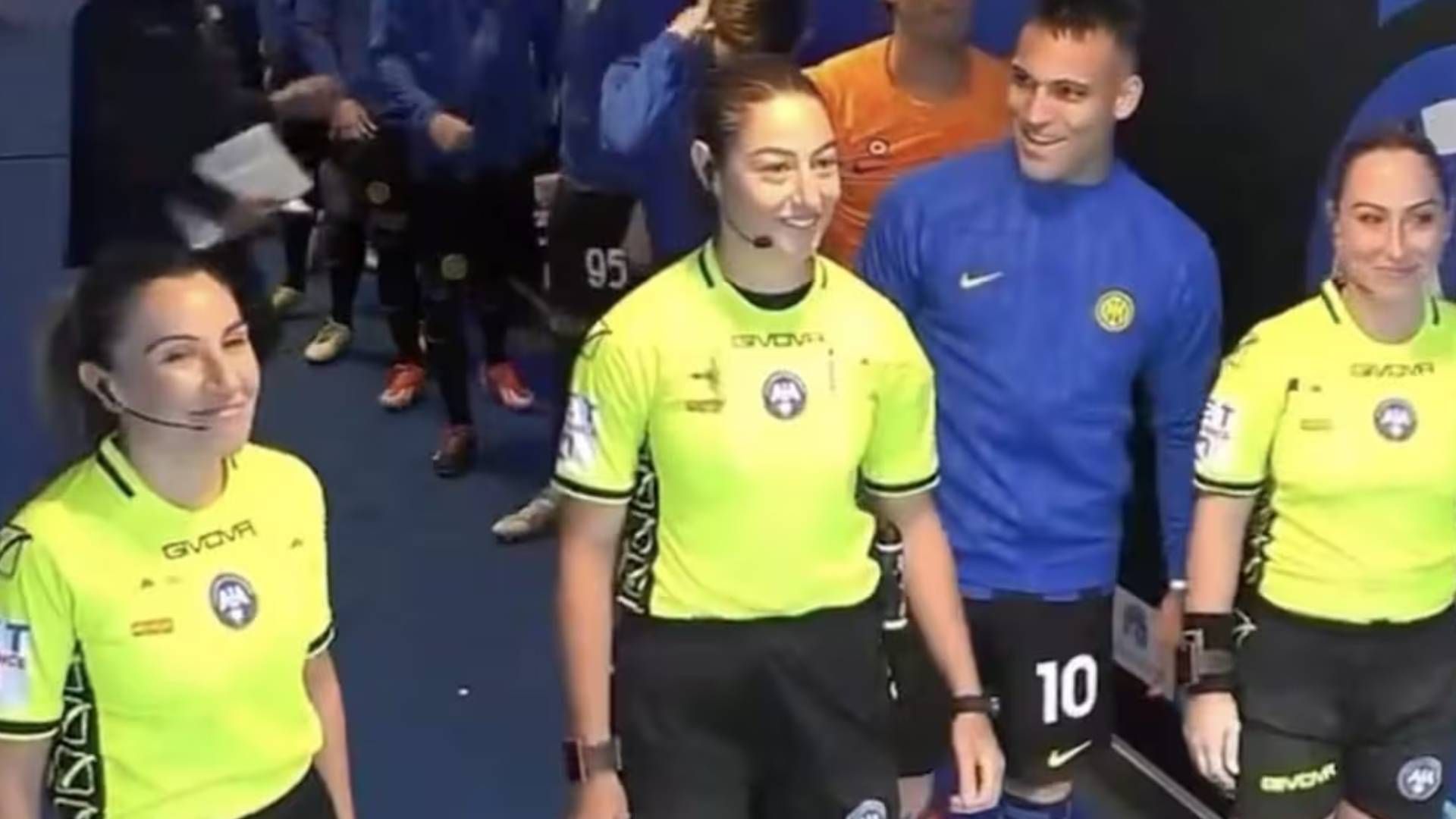Nel tunnel del Meazza, pochi istanti prima di scendere in campo, Lautaro Martinez si è avvicinato alla squadra arbitrale, composta Maria Sole Ferrieri Caputi, direttrice di gara, e dalle assistente Francesca Di Monte e Tiziana Trasciatti.