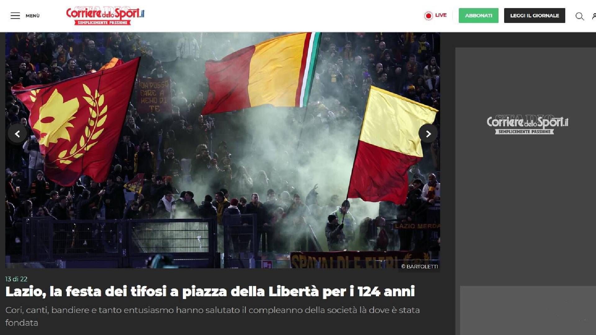 Come ogni anno i tifosi si sono ritrovati in Piazza della Libertà a Roma per aspettare la mezzanotte e celebrare l’anniversario, e i media, in maniera più o meno approfondita, hanno dato risalto alla ricorrenza, soprattutto i quotidiani romani. Il Corriere dello Sport in particolare ha dedicato ampio spazio alla faccenda, rendendosi però protagonista di una clamorosa svista che ha fatto storcere, e non poso, il naso a tanti supporter della Lazio.