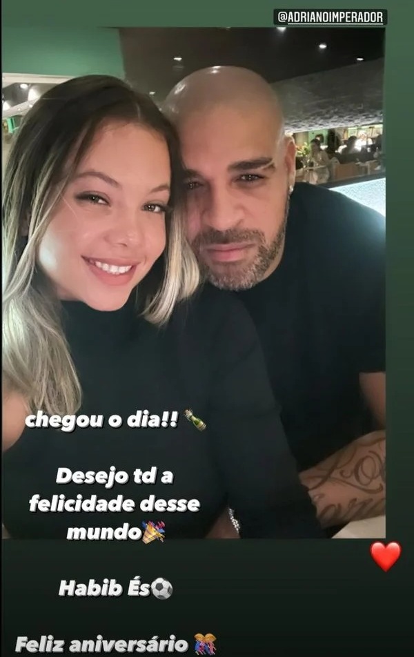 La ventunenne ha pubblicato una Instagram Story in compagnia dell’ex stella dell’Inter scrivendo: “Ti auguro tutta la felicità del mondo. Buon compleanno“. I media brasiliani descrivono la ragazza, nativa di Rio de Janeiro, come la nuova fidanzata di Adriano. L’ex nazionale verdeoro, la cui carriera è andata in malora funestata da gravi problemi extracalcistici, giovedì ha invitato la ragazza alla sua festa di compleanno a tema Flamengo tra cibo, balli e musica in un ristorante vicino alla sua casa di Rio.