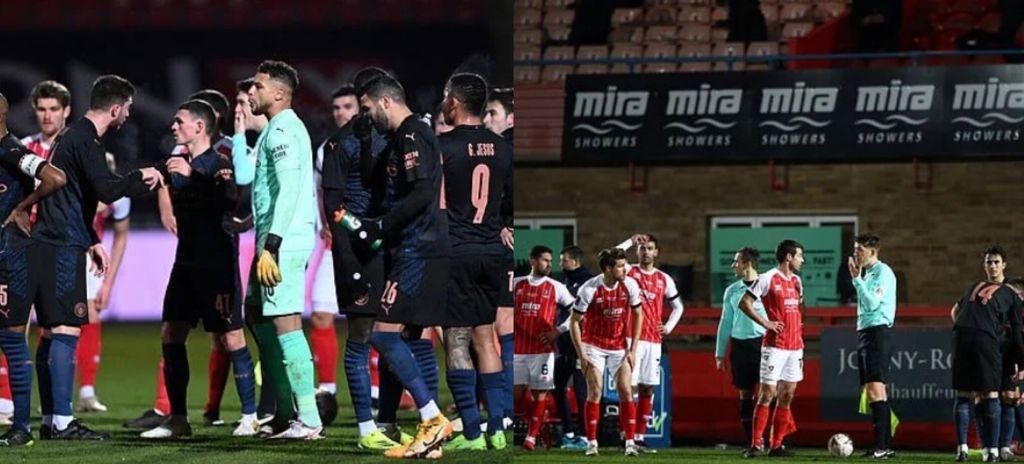 Al minuto 41 la sfida tra Cheltenham e Manchester City è stata sospesa dall‘arbitro Stuart Attwell. Il motivo? Problemi di sicurezza per i giocatori sul campo causati da copiosi fuochi d’artificio fatti esplodere da alcuni tifosi all’esterno dell’impianto. L’arbitro ha preso contatto con la polizia locale mentre entrambe le squadre sono state portate in disparte e hanno avuto la possibilità di prendere un po’ d’acqua mentre polvere e fumo invadevano il terreno di gioco. Dopo sei, lunghi minuti il gioco è finalmente potuto riprendere in tutta sicurezza. Un evento inconsueto, ma neanche troppo: senza andare troppo lontano nel terzo turno di FA Cup stessa situazione era capitata nel match tra Stockport e West Ham.