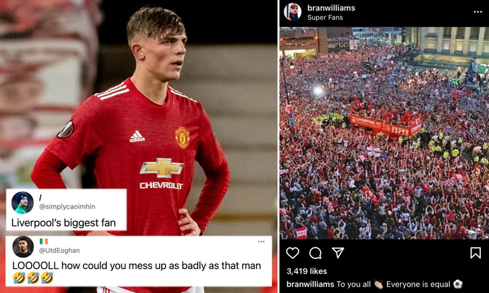 Una notte di festa che si trasforma in un piccolo incubo per Brandon Williams. Tutta colpa dei social network. Il ventenne, felice per l’addio del Manchester United alla Superlega, condivide con i propri follower un’immagine simbolo: la parata per la vittoria della Champions League. Tutto molto bello, se non avesse selezionato una foto della festa dei rivali del Liverpool. Il difensore, per sbaglio, pubblica su Instagram un’immagine dei Reds che celebrano il loro trionfo in Champions League nel 2005. Una foto dei rivali in festa, accompagnata dalla didascalia: “Per tutti voi, tutti sono uguali”.