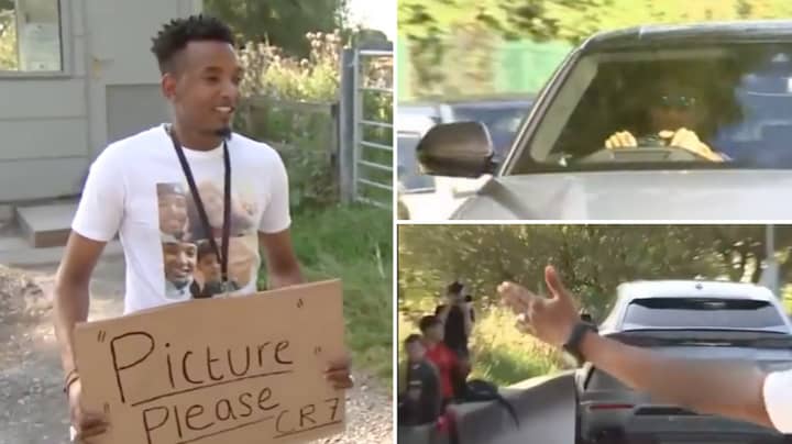 Per questo, indossata una t-shirt con con i selfie della famiglia di CR7 e armato di cartello, il giovane ha preso all’alba un taxi dalla sua Blackburn per raggiungere il centro di allenamento dei Red Devils e coronare il suo sogno. “Voglio fare un selfie con Ronaldo, sono sicuro di riuscirci. È un ragazzo fantastico. Penso che farà una grande stagione in Premier League e Champions quest’anno. Sono arrivato con un taxi alle 6 del mattino per avere questa foto“, aveva detto a SkySports che lo aveva notato in attesa. Peccato però che le cose non siano proprio andate come il tifoso sperava…