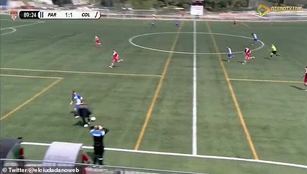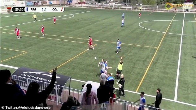 Era il minuto 89, con i padroni di casa del Villanueva del Pardillo che avevano da poco trovato la rete dell’1-1 e stavano spingendo cercando la vittoria. Su un calcio d’angolo in favore degli avversari, dopo che la palla era terminata sul fondo, il portiere ha fatto ripartire rapidamente il gioco sulla fascia e l’esterno di prima ha lanciato in profondità un compagno. Quest’ultimo però è stato perfettamente anticipato dall’assistente del Colmenar, che con assoluta nonchalance ha bloccato la ripartenza.
