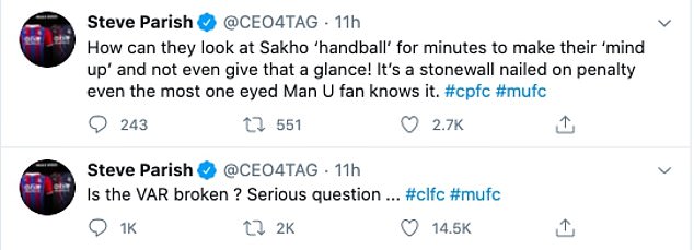 Come a Steve Parish, presidente del Crystal Palace, ultimo avversario in Premier dello United. Nella sconfitta interna per 0-2 dei suoi, il Manchester ha dovuto ringraziare un paio di volte il Var, che ha prima sorvolato su un dubbio intervento del difensore dello United Lindelof sull’attaccante dei Glaziers Zaha, poi ha annullato un goal ai padroni di casa per un più che millimetrico fuorigioco di Ayew. Parish ha espresso tutto il suo disappunto con due tweet pubblicati sul proprio profilo, arrivando a chiedersi: “Domanda seria…Il Var è rotto?“. Una richiesta lecita, vedendo l’andamento della partita. Intanto sul web monta l’ira dei tifosi rivali, uniti per la prima volta contro un nemico comune.