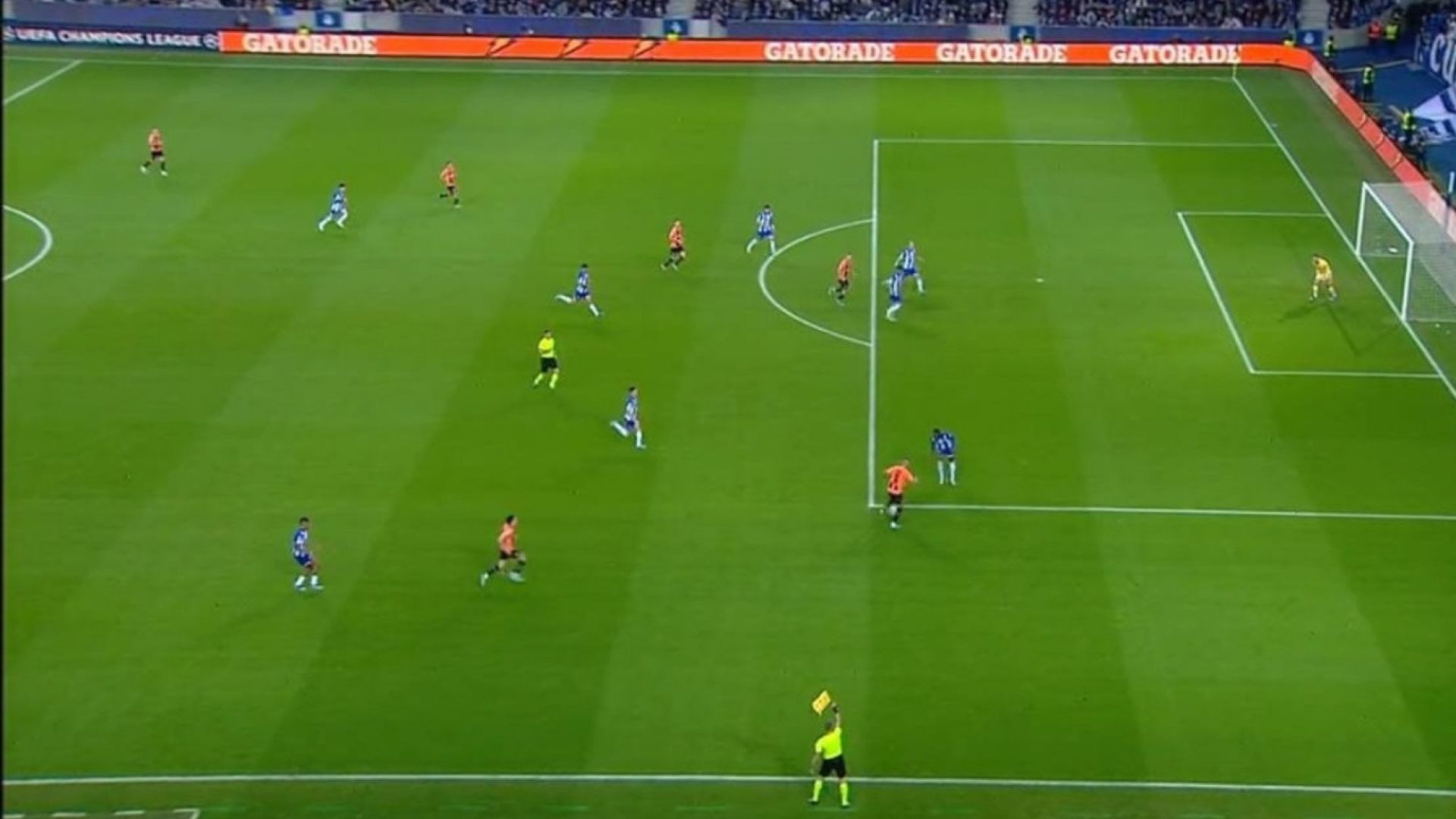 L’arbitro indica dunque il centrocampo ma i giocatori del Porto non ci stanno e lo circondano, facendogli notare come la bandierina del guardalinee si fosse alzata.