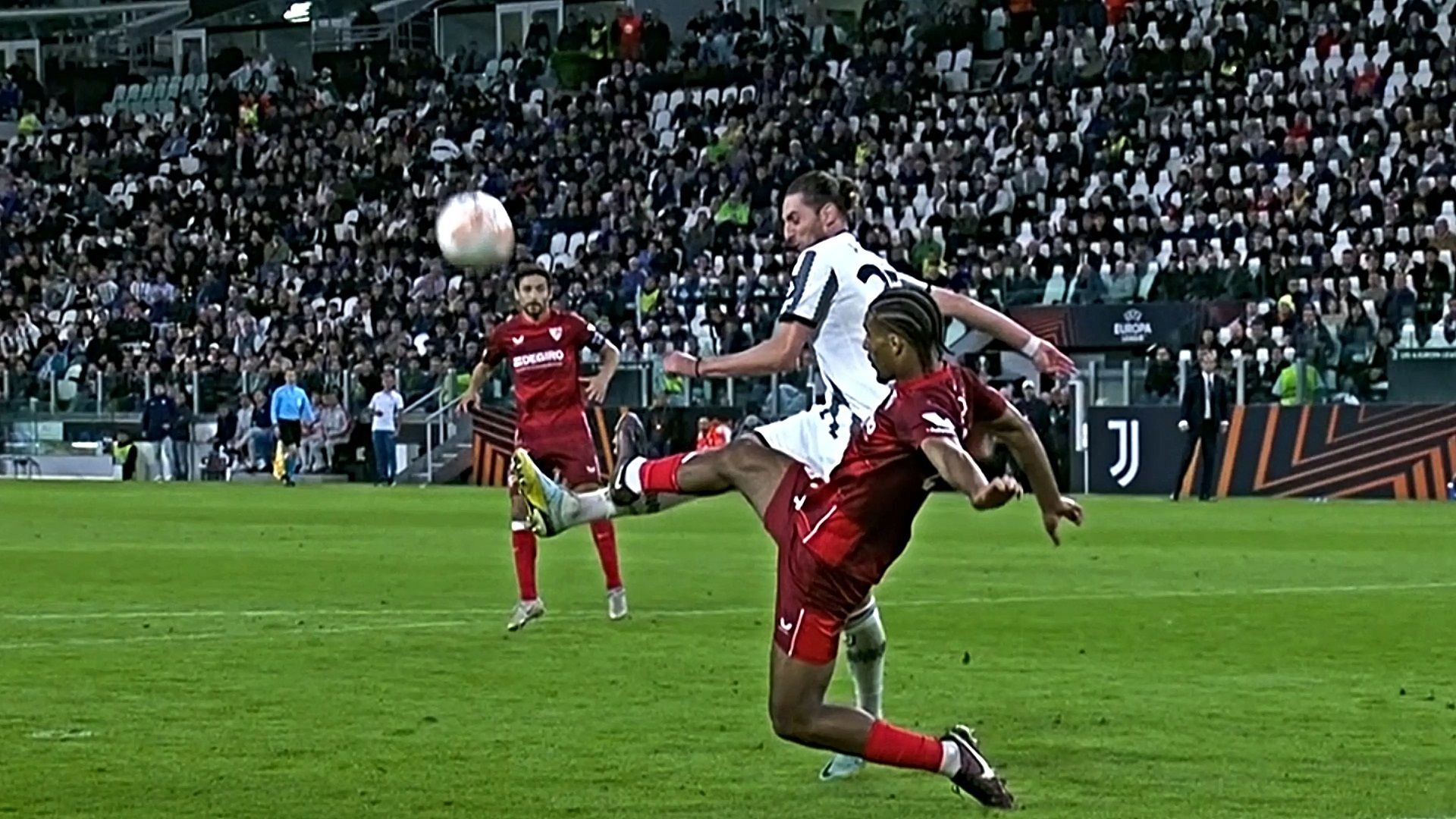 La Juventus ha pareggiato l’andata della semifinale di Europa League contro il Sivigilai per 1-1. È stato il difensore Gatti a ristabilire la parità nei minuti di recupero. Ma durante la partita c’è stato un episodio riguardante Rabiot: il francese ha subito un brutto fallo ma il VAR non è intervenuto, negando un colossale calcio di rigore.