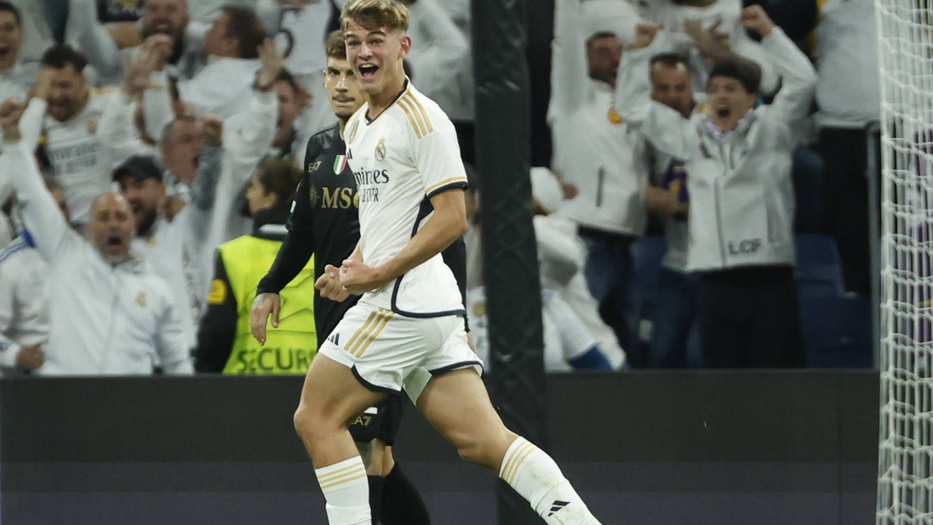 Si è conclusa con la vittoria dei blancos per 4-2 la sfida tra Real Madrid e Napoli, valevole per la quinta giornata della fase a gironi di Champions League. Una sconfitta che tiene ancora aperto il discorso qualficazione e, in tal senso, sarà decisivo il match del Maradona contro il Braga (terzo a 4 punti), con gli azzurri (a quota 7) che avranno a disposizione due risultati su tre. Al Bernabeu gli uomini di Mazzarri tengono testa al Real Madrid, salvo crollare nel finale con le reti di Nico Paz (con la complicità di Meret) e Joselu.