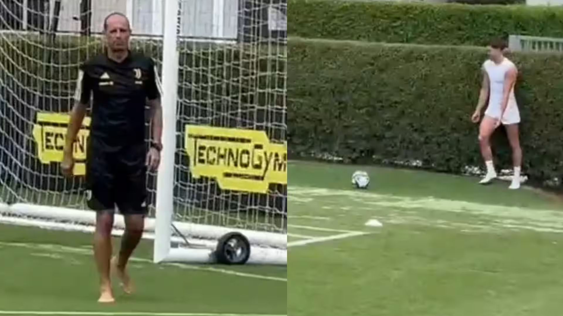 Allegri e Vlahovic si sono sfidati a una gara di tecnica e il tecnico della Juventus ha battuto il suo attaccante e lo ha deriso.