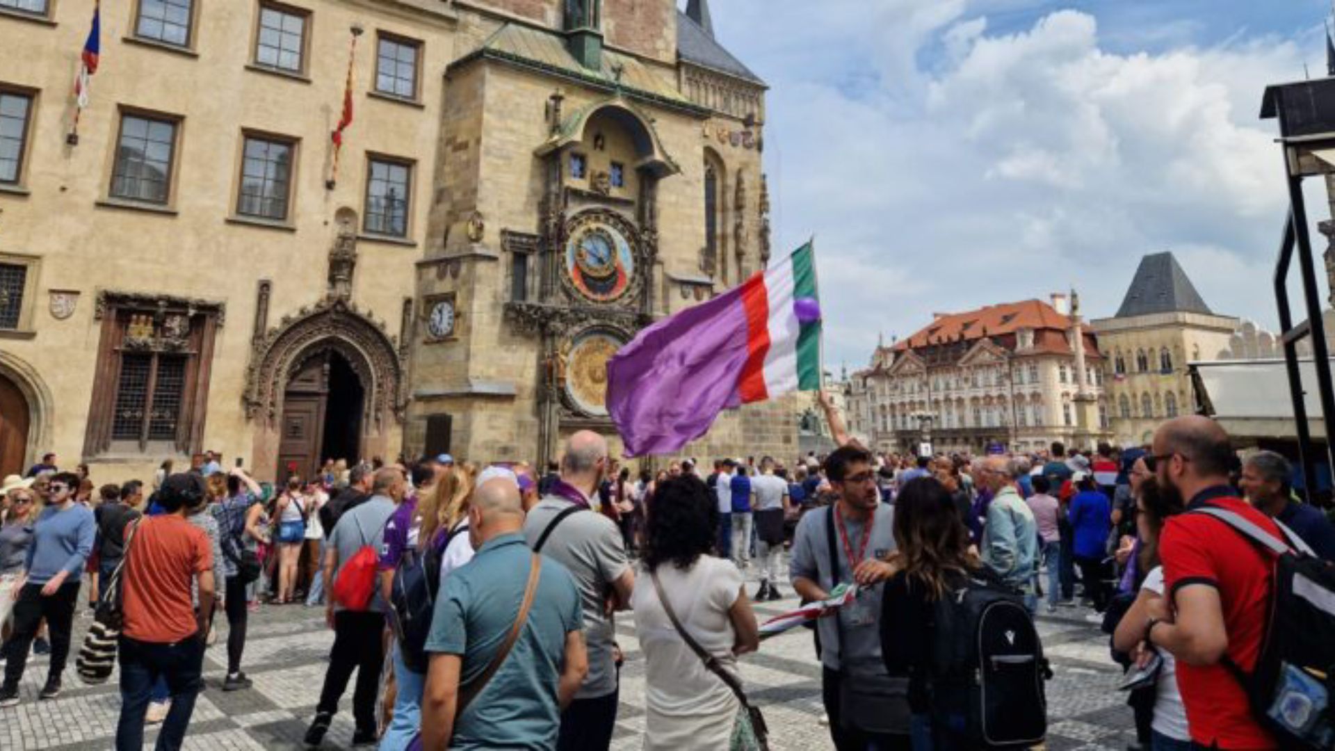 Praga è completamente invasa dalle tifoserie di Fiorentina e West Ham in attesa della finale di Conference League. In piazza le due fazioni si sfidano a colpi di cori.