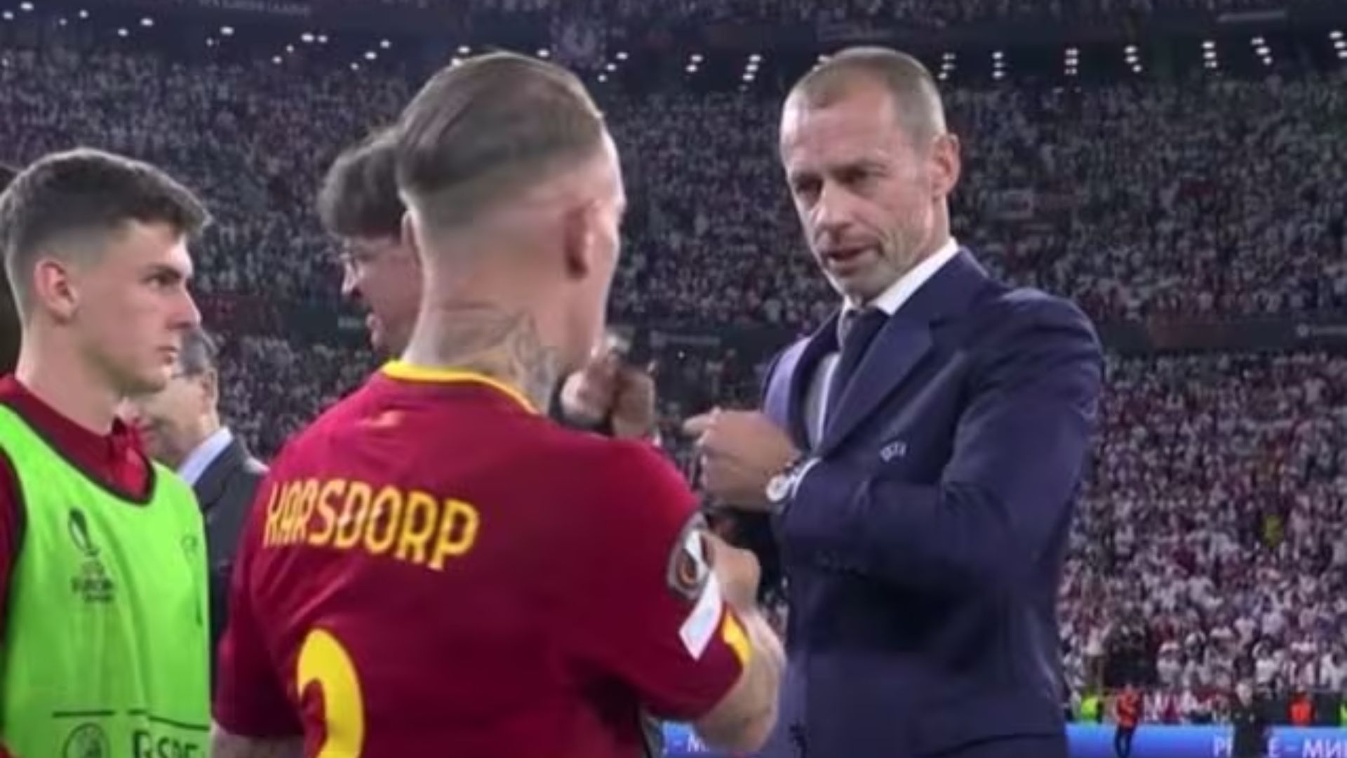 Rick Karsdorp si è reso protagonista della finale per aver fatto arrabbiare Ceferin alla cerimonia di premiazione, rifiutando di mettersi al collo la medaglia.