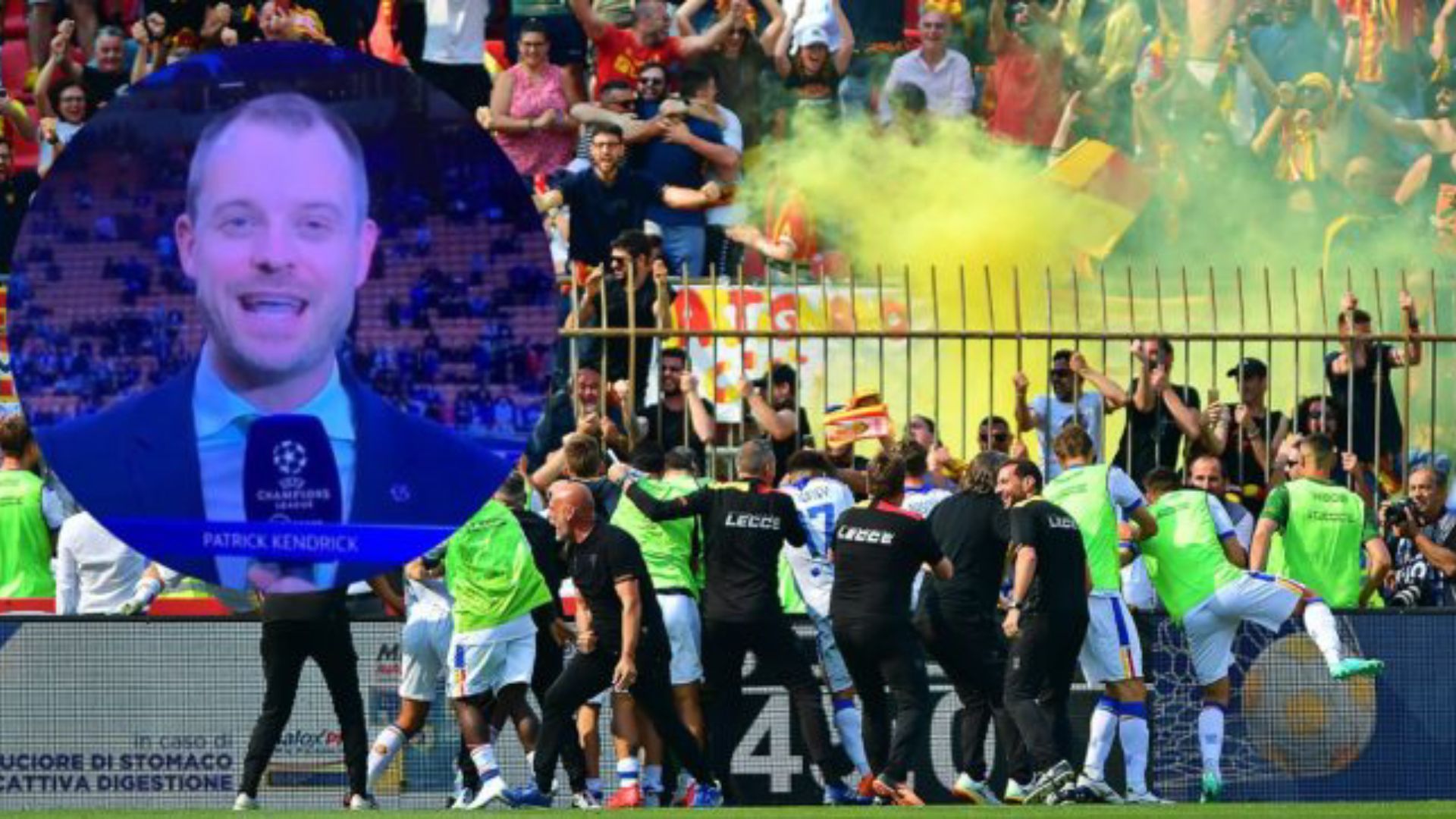 Il telecronista inglese Patrick Kendrick è impazzito di gioia al gol salvezza del Lecce segnato al 101' da Colombo su rigore: urla una frase in salentino.