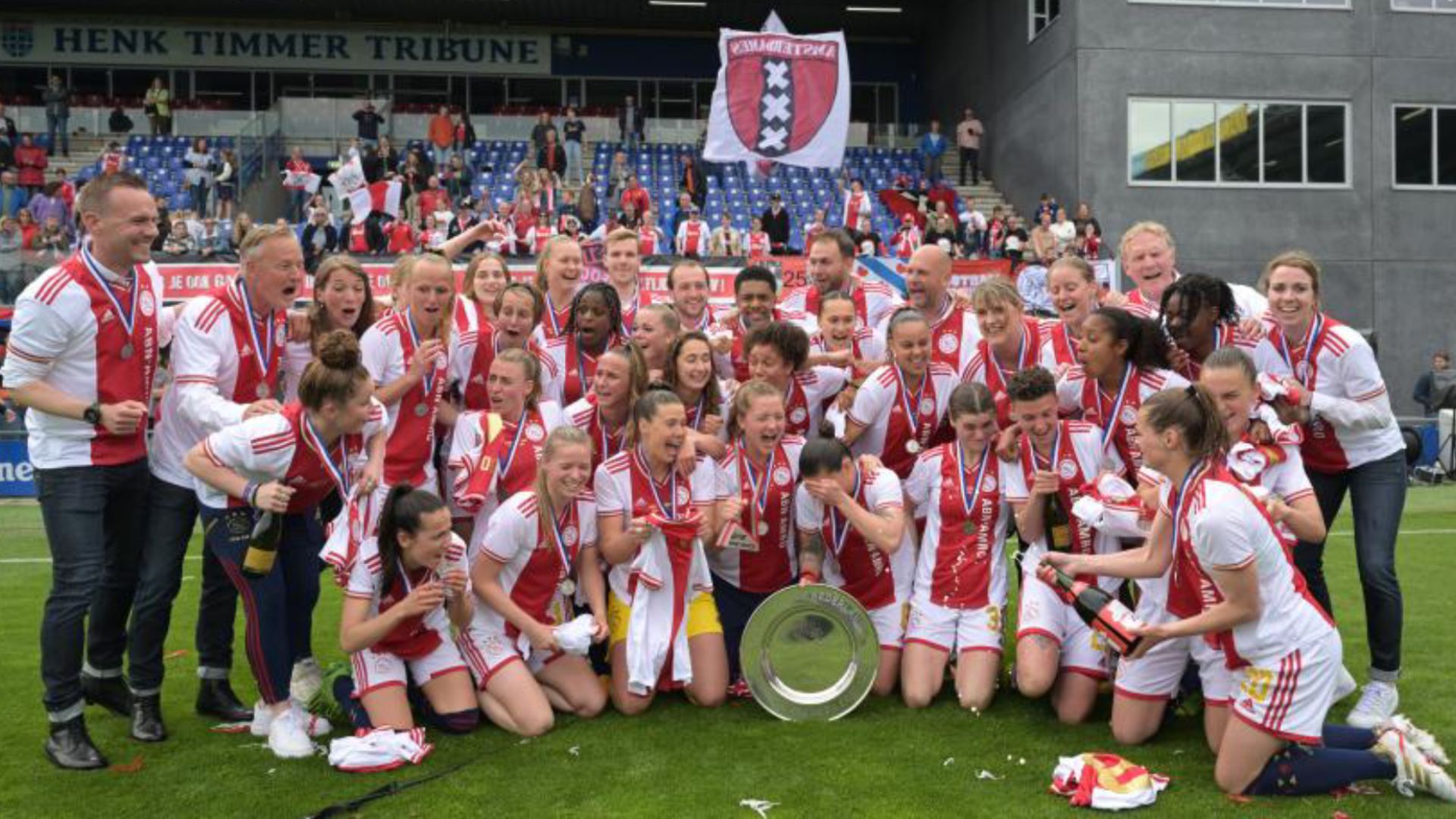 La squadra femminile dell'Ajax ha vinto il campionato ma non ci saranno festeggiamenti pubblici perché la squadra maschile sta venendo contestata dai tifosi.