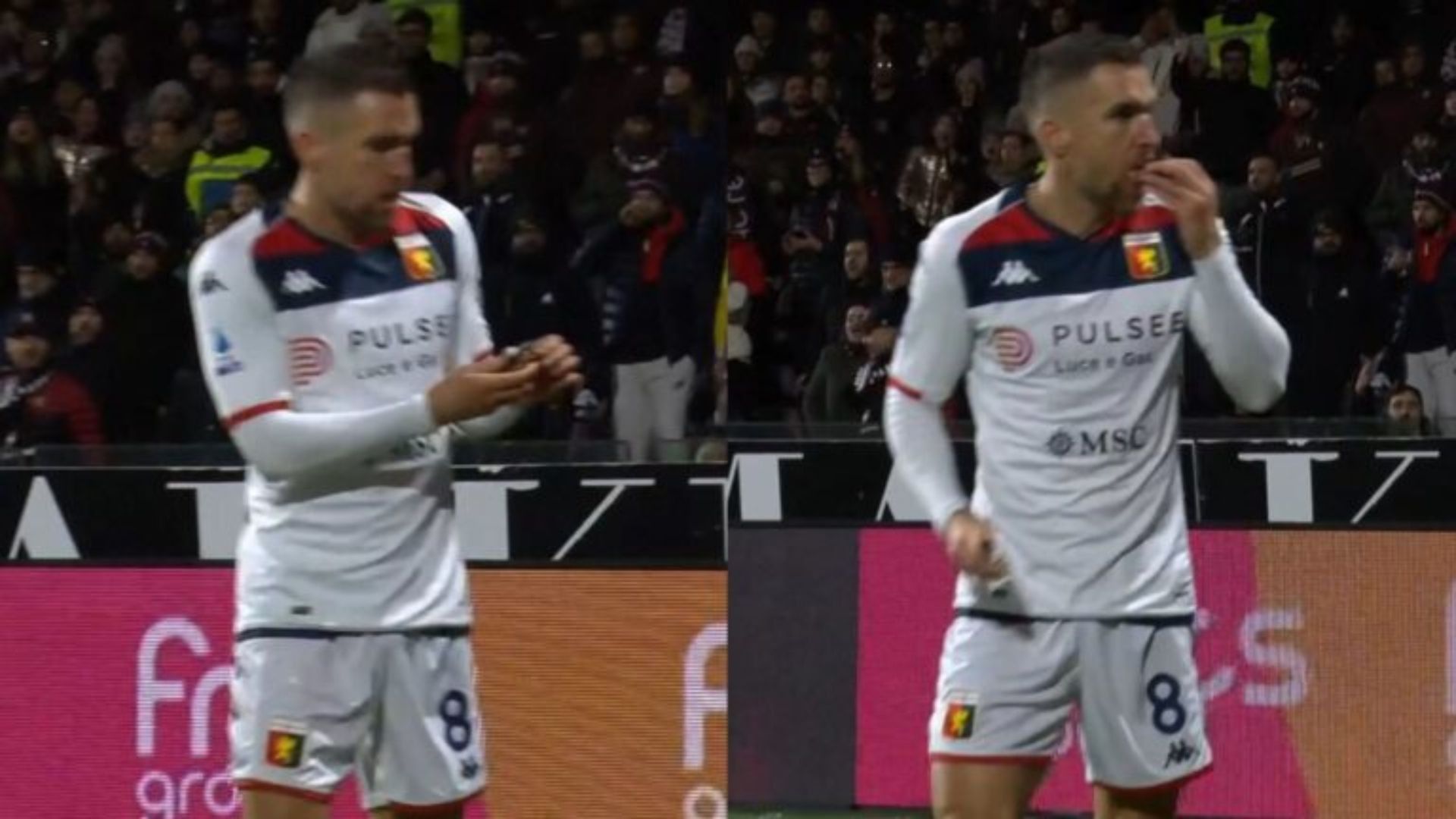 Ieri al gol di Retegui in Salernitana-Genoa dagli spalti sono stati lanciati vari oggetti, tra cui un pezzo di calcinaccio e una barretta. Questa è stata raccolta da Strootman che le ha dato un morso.