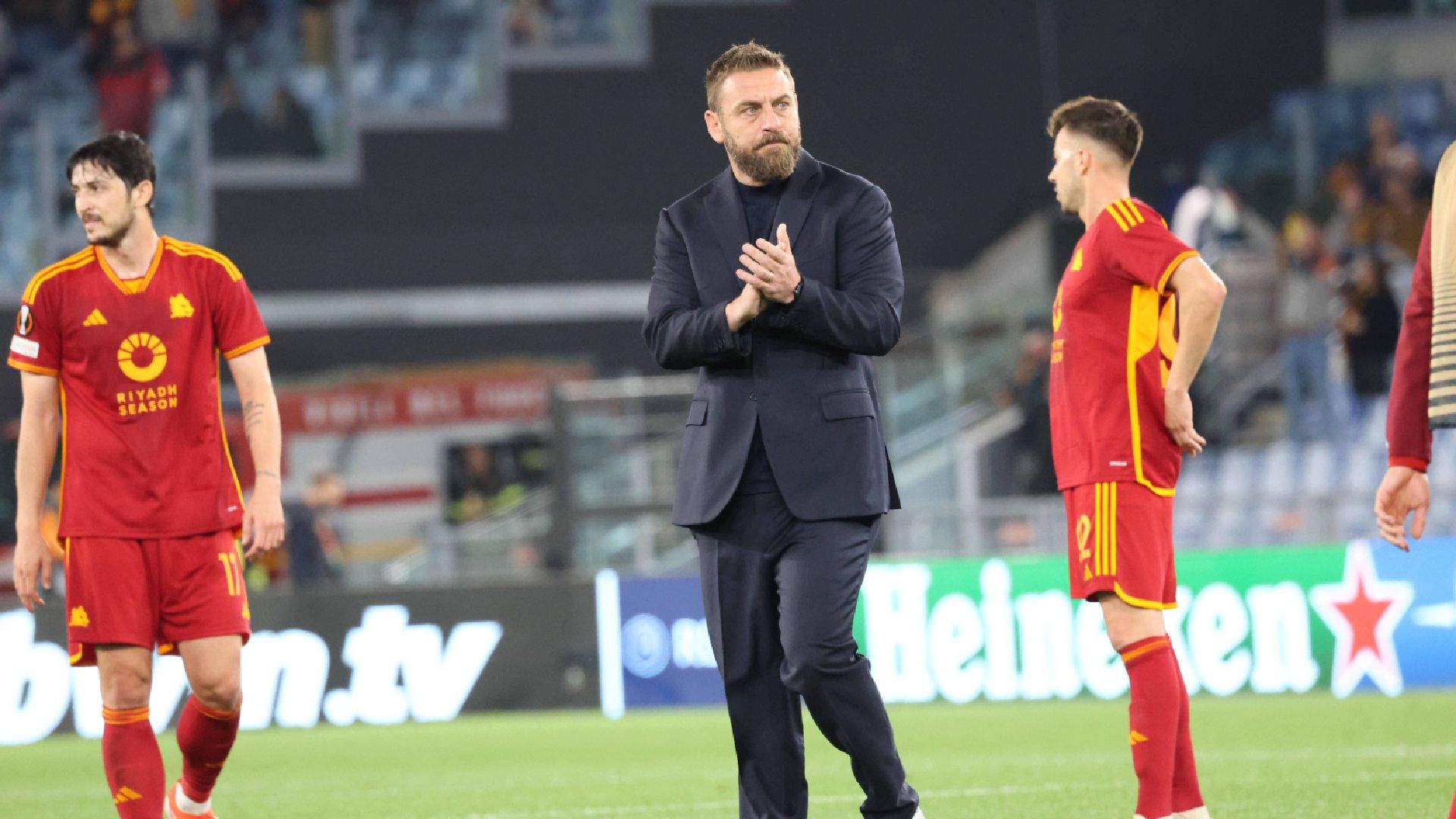 L'allenatore giallorosso Daniele De Rossi è intervenuto ai microfoni dei cronisti al termine dell'andata delle semifinali di Europa League persa in casa dalla Roma contro il Bayer Leverkusen