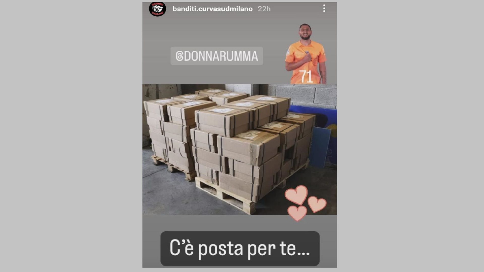 Martedì 7 novembre allo stadio San Siro si sfideranno Milan e Psg per la quarta giornata della Champions League, una partita che per i rossoneri è vitale ed è da vincere ad ogni costo. La partita, che si preannuncia spettacolare, avrà anche una sfida nella sfida ovvero i tifosi del Milan contro l’ex Donnaruma. Il portierone dei francesi e della nazionale Azzurra non è stato ancora perdonato dai milanisti che lo hanno fischiato anche in occasione di Italia-Ucraina giocata a San Siro. Sui social è stata pubblicata una foto misteriosa sulla pagina della curva dei rossoneri: una serie di casse di legno, il tag di Donnarumma e il messaggio “C’è posta per te“.