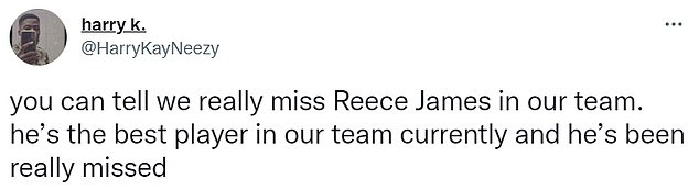 Moltissimi tifosi hanno commentato il nuovo look del difensore. Altri, invece, hanno voluto sottolineare quanto si senta la sua mancanza in campo. Il Chelsea ha faticato e i fan londinesi sperano che Reece James torni presto: “Nessuna mancanza di rispetto per Azpilicueta, ma il lato destro sembra il nostro punto debole. Mi manca Reece James onestamente”, ha detto un tifoso. E un altro ha ribadito: “Possiamo dire che ci manca davvero Reece James. È il miglior giocatore della nostra squadra al momento e manca davvero”. Il 22enne dovrebbe rimanere fuori fino a gennaio, ma di recente ha insistito sul fatto che farà tutto il possibile per tornare in forma per poter partecipare al Mondiale.